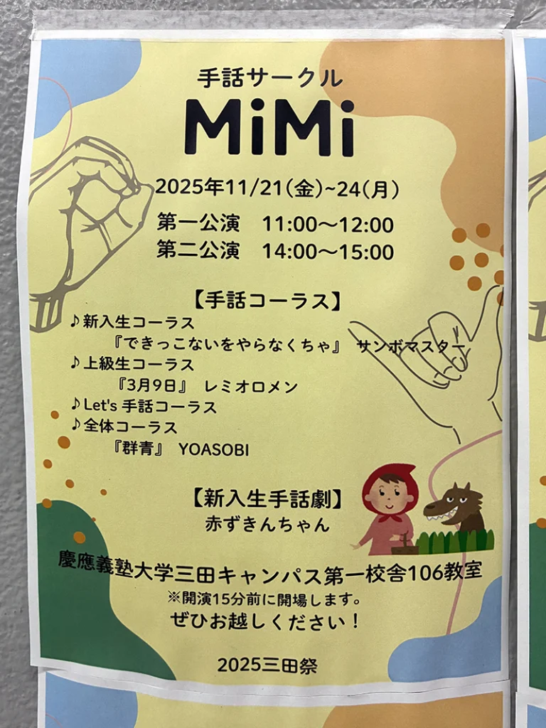 2025年11月21日〜24日、慶應義塾大学 三田キャンパスで開催された「第67回三田祭」。慶應義塾大学公認団体である手話サークルMiMi(ミミ)が行った公演において、当社の「ScribeAssist」のリアルタイム字幕機能が活用されました。本取り組みは、ろう・難聴者を含む来場者に対し、公演中の発言をリアルタイムで字幕表示することで情報保障を提供することを目的としています。本記事では、取り組みの詳細や参加者の声をご紹介します。