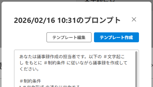 カスタムプロンプトで要約した場合、履歴からワンクリックでテンプレート化できるようになりました。うまくいったプロンプトをテンプレート化し、使い回すことができます。